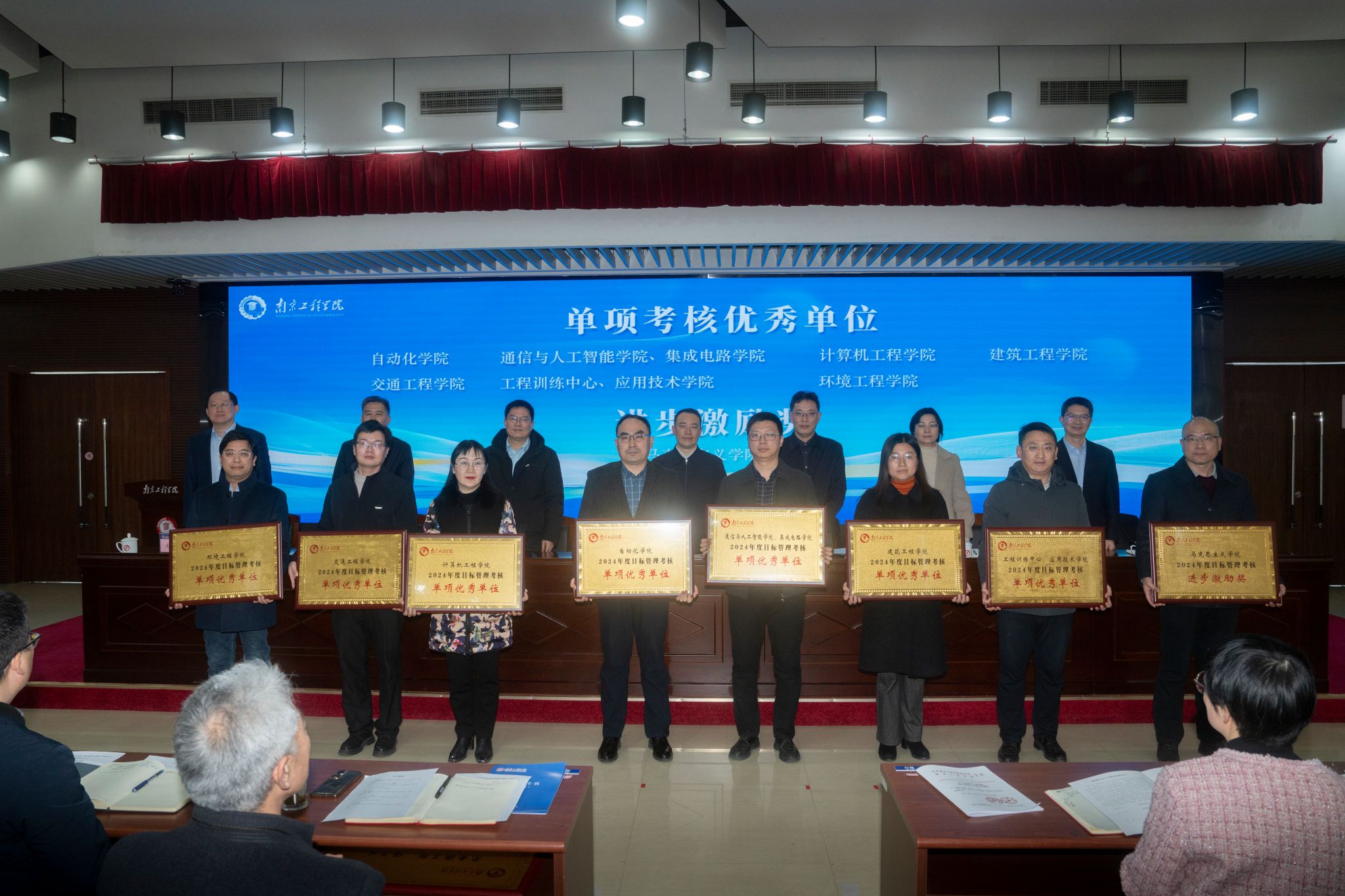 会上,党委书记孙爱武向受表彰的部门、单位表示热烈祝贺,向为学校各项事业发展倾情奉献的广大教职员工表示衷心感谢。他就认真做好2025年各项工作作动员部署,并提出三点要求:一是把准方向求“实”效,深入学习贯彻习近平总书记重要讲话重要指示精神,深刻理解全国两会精神丰富内涵实践要求、深刻把握江苏“新春第一会”精神,坚定学校高质量发展信心;二是抓紧重点亮“实”招,扎实做好省委巡视整改工作,聚力攻坚关键核心指标,推进平安和谐校园建设,奋力推动安全与发展同频共振;三是解放思想务“实”功,破除“惯性思维”“畏难情绪”“等靠要”思想,树立创新、担当自觉意识,做到提振精神干事创业、强化作风狠抓落实,凝聚全校发展合力。孙爱武强调,2025年是贯彻全国全省教育大会精神开局之年,是实施一流应用型大学建设“登峰计划”的关键之年,也是“十四五”规划收官、“十五五”规划谋划之年。全校上下必须以“起步就是冲刺、开局就是决战”的奋斗姿态,迅速行动、真抓实干,全盘统筹、科学有序抓好各项工作,奋力书写“教育强国,南工程有为”的教育答卷。