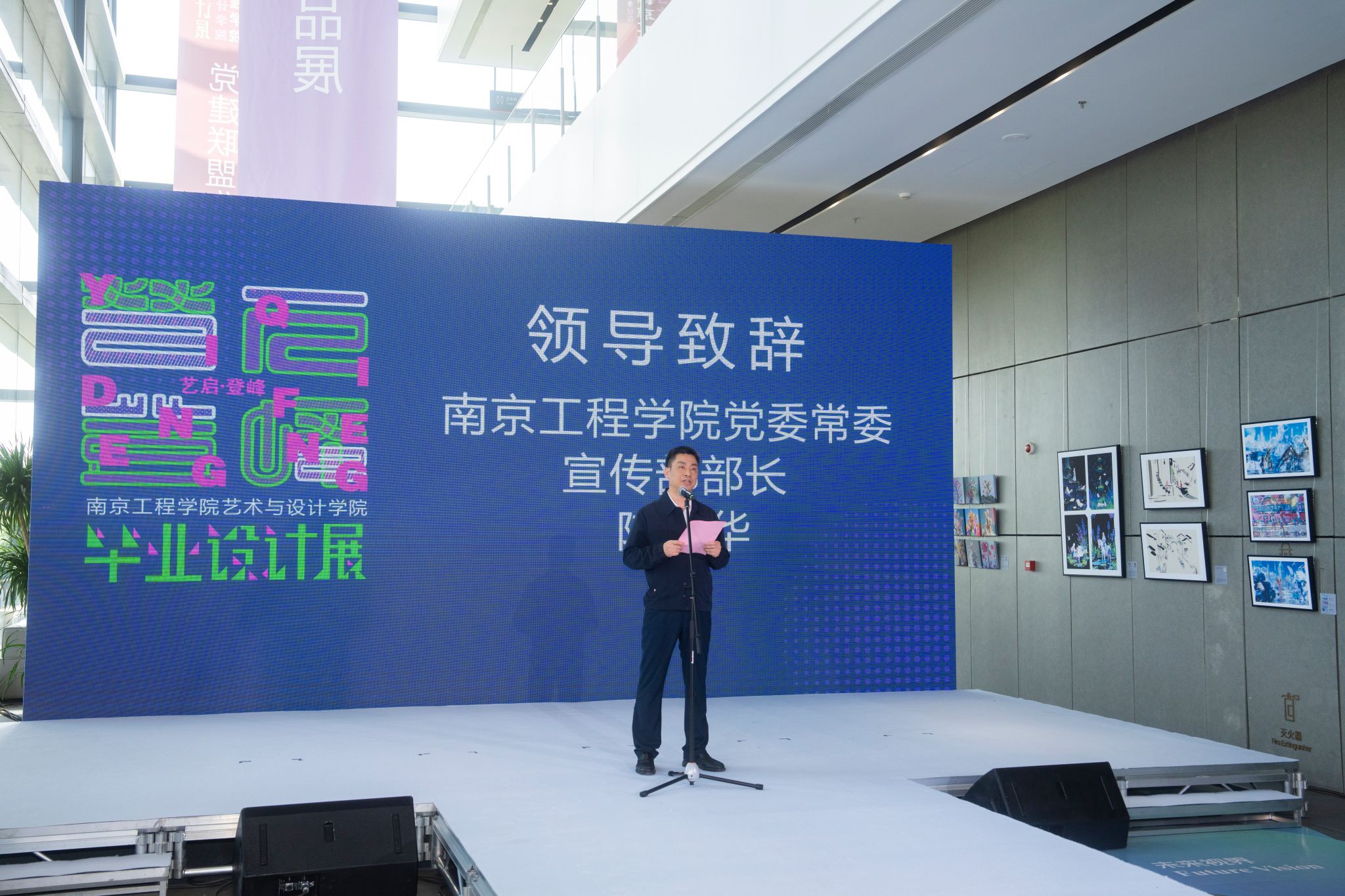 4月18日上午,beat365艺术与设计学院以“艺启·登峰”为主题的毕业设计展在江宁美术馆盛大开幕。党委书记孙爱武出席活动,并宣布展览开幕。党委常委、宣传部部长陈建华,江宁区委宣传部副部长、文明办主任袁才方,江宁区文化和旅游局党委书记、局长陈敏,江宁区科协主席黄正勇, 江宁区文化和旅游局副局长张丽丽,中国工艺美术大师张清雷,江苏华泽控股集团有限公司董事长、校友代表戴福书,南京地区兄弟院校艺术设计学院负责人以及beat365相关职能部门负责人、艺术与设计学院党政负责人以及师生代表参加活动。