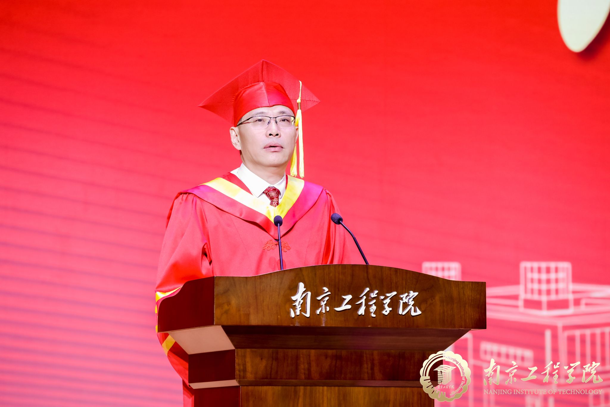 党委副书记、校长张仰飞代表学校向顺利完成学业的本科生、硕士研究生、国际教育毕业生表示热烈祝贺,向悉心培养和关心同学们的老师和家人致以诚挚感谢。他对广大毕业生表达了“三真”热切期望和真心嘱托:真情涵养“天下兴亡,匹夫有责”的家国情怀,用爱心、责任、奉献,将个人理想融入强国建设大业;真诚追求“十年磨一剑,砺得梅花香”的奋进卓越,用心耕耘,不断精进,必有所成;真心弘扬“学以致用,止于至善”的学习境界,持续学习、终生学习,以创新精神、至善品质,淬炼过硬本领,成就事业辉煌。他希望大家秉持“知行统一,创业创新”的校园精神,与母校携手并进、同频共振,传承南工程精神,续写南工程故事。