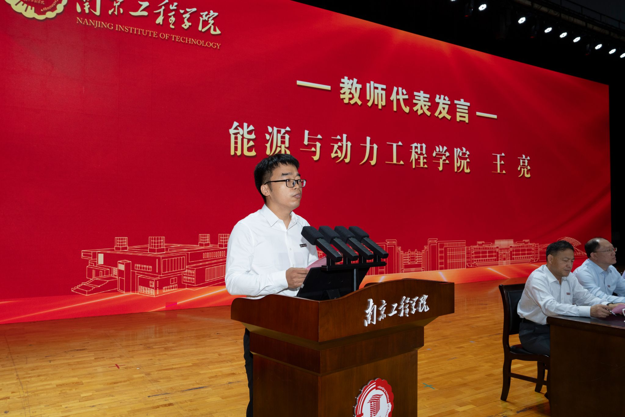 教师代表、能源与动力工程学院王亮对2025级新同学表示热烈欢迎,并结合自身经历和执教经验,勉励同学们坚定理想信念,规划四年发展,坚持刻苦学习,不负韶华,不负青春。