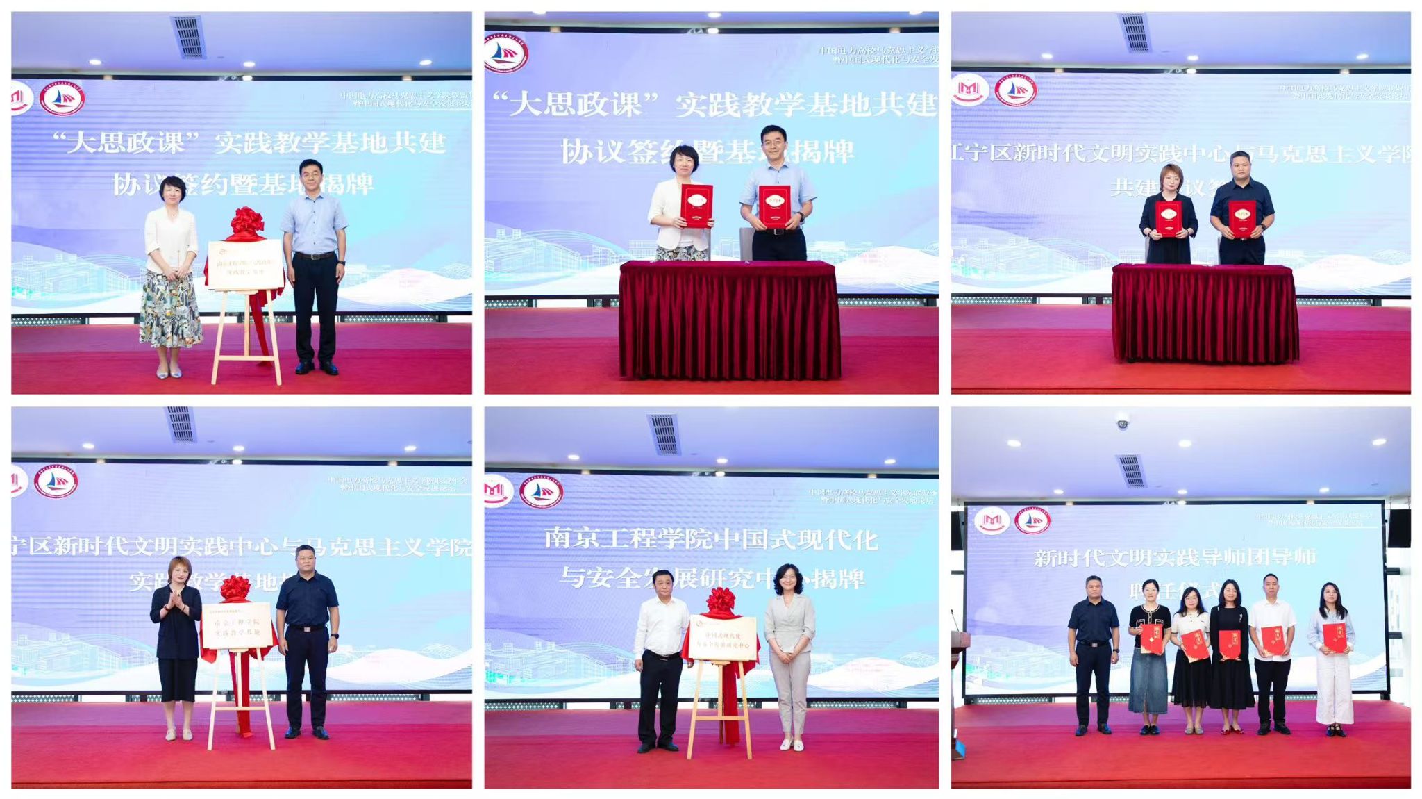 会议期间还先后举行了beat365官方网站马克思主义学院与国网江苏电力公司党校共建“大思政课”实践教学基地、与江宁区新时代文明实践中心共建“宁听新声”项目及beat365官方网站实践教学基地的签约与揭牌仪式,并完成了新时代文明实践导师团导师的聘任和“beat365官方网站中国式现代化与安全发展研究中心”的揭牌。