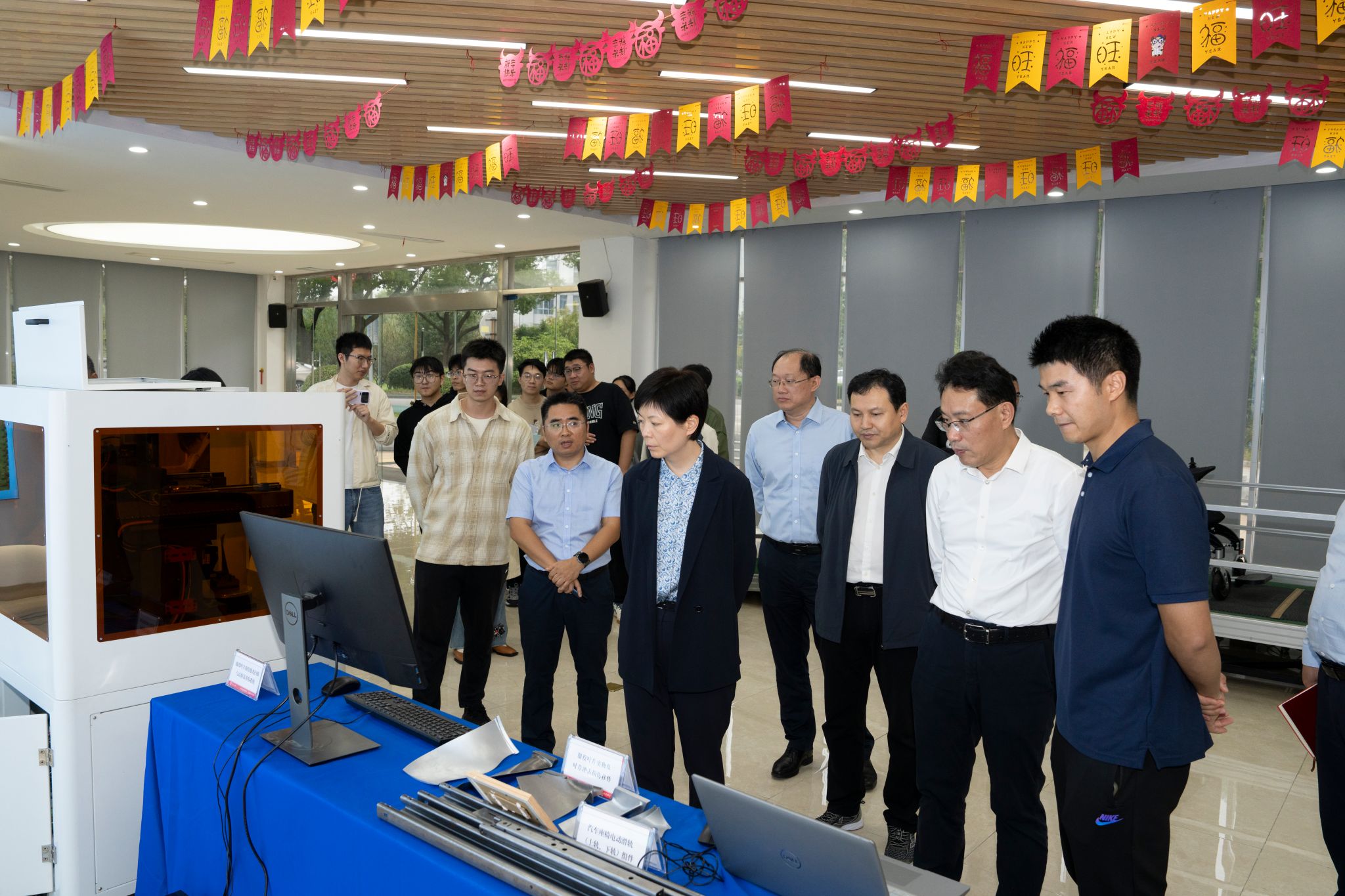 蒋敏一行实地调研了大学生创业园“天印梦工场”、江苏省配电网智能技术与装备协同创新中心、康尼机电智能制造研究院,并就科研成果创新应用、核心技术攻关及转化落地路径与科研人员展开深入交流,充分肯定了南工程在支撑南京市“4266”产业体系、推动智能电网、高端装备制造等领域发展中的突出贡献,勉励学校持续深化产教融合,加速科研成果向现实生产力转化。