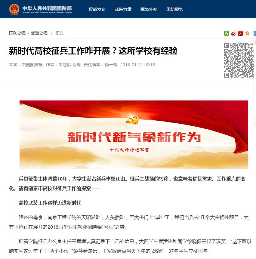 丁婉秋和田守印诉说的是看得见的学校武装部的工作,其背后是省市兵役部门着眼兵员结构调整,打造服务型征兵办的大量工作:警备区指导各高校武装部开办公众号、微信群、QQ群,打造24小时办公的武装部;玄武区人武部与南京理工大学、南京林业大学等7所高校“部校挂钩”,确保兵役机关对高校征兵工作精准指导、管理和保障……