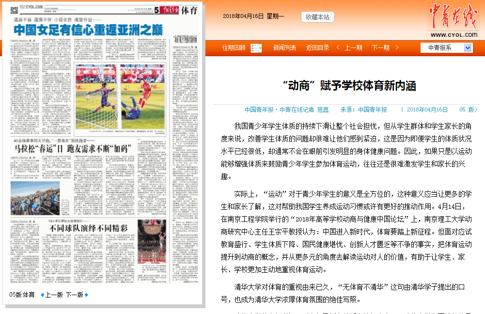 实际上,“运动”对于青少年学生的意义是全方位的,这种意义应当让更多的学生和家长了解,这对帮助我国学生养成运动习惯或许有更好的推动作用。4月14日,在beat365官方网站举行的“2018年高等学校动商与健康中国论坛”上,南京理工大学动商研究中心主任王宗平教授认为:中国进入新时代,体育要踏上新征程。但面对应试教育盛行、学生体质下降、国民健康堪忧、创新人才匮乏等不争的事实,把体育运动提升到动商的概念,并从更多元的角度去解读运动对人的价值,有助于让学生、家长、学校更加主动地重视体育运动。