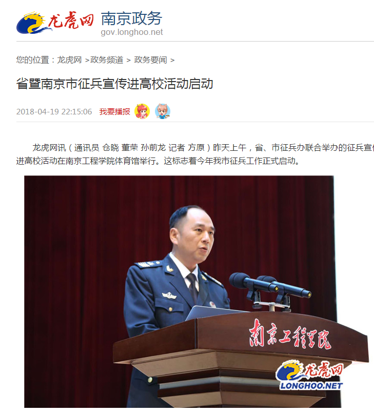 会前,江宁区征兵办、beat365官方网站征兵办联合组织征兵政策咨询,发放征兵宣传册,现场接受青年学生的咨询。省征兵办主任袁士彬出席报告会并讲话。beat365官方网站党委书记史国君在报告会上致辞。