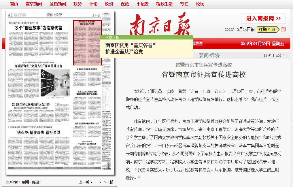 上一篇: 《现代快报》:征兵宣讲走进南工程,近百位同学现场报名