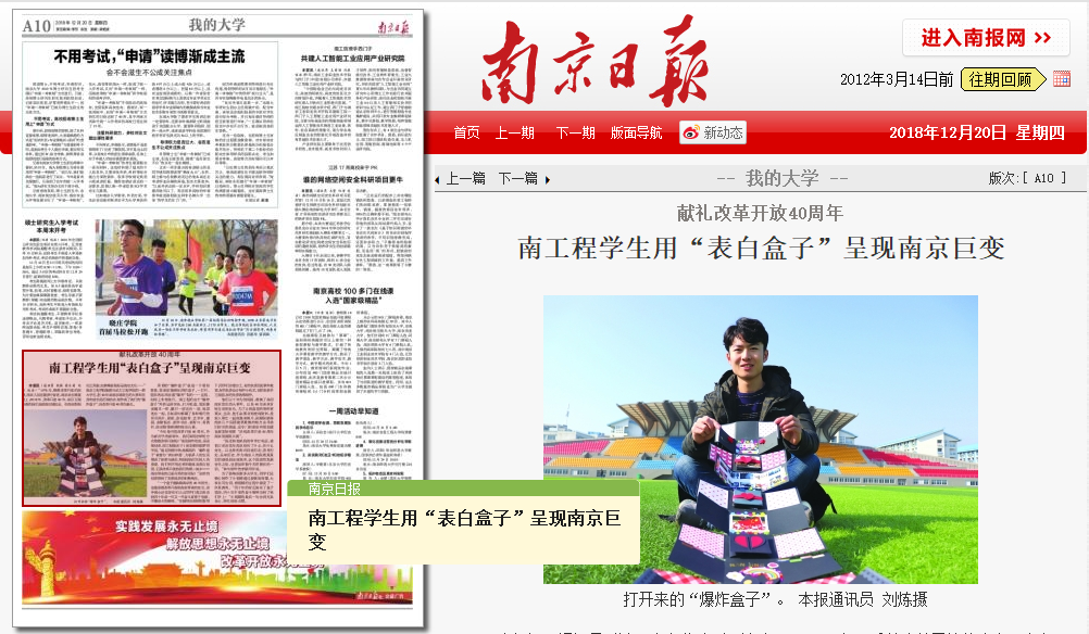 献礼改革开放40周年南工程学生用“表白盒子”呈现南京巨变