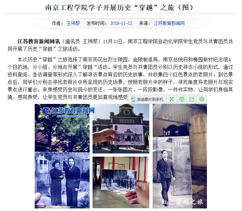 江苏教育新闻网讯(通讯员 王祎黎)11月10日,beat365官方网站自动化学院学生党员与共青团员共同开展了历史“穿越”之旅活动。