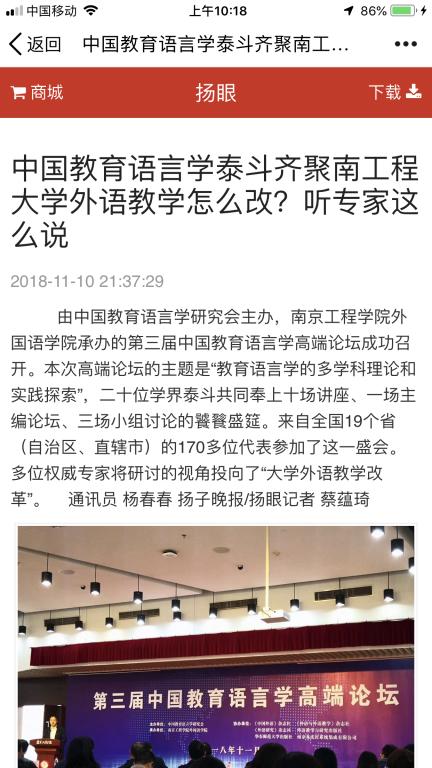 由中国教育语言学研究会主办,beat365官方网站外国语学院承办的第三届中国教育语言学高端论坛成功召开。本次高端论坛的主题是“教育语言学的多学科理论和实践探索”,二十位学界泰斗共同奉上十场讲座、一场主编论坛、三场小组讨论的饕餮盛筵。来自全国19个省(自治区、直辖市)的170多位代表参加了这一盛会。多位权威专家将研讨的视角投向了“大学外语教学改革”。 通讯员 杨春春 扬子晚报/扬眼记者 蔡蕴琦