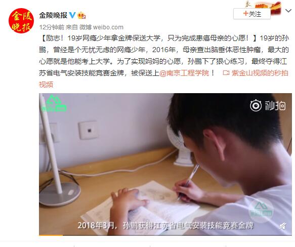 下一篇: 《紫金山视频》:励志!19岁网瘾少年拿金牌保送大学,只为完成患癌母亲的心愿!