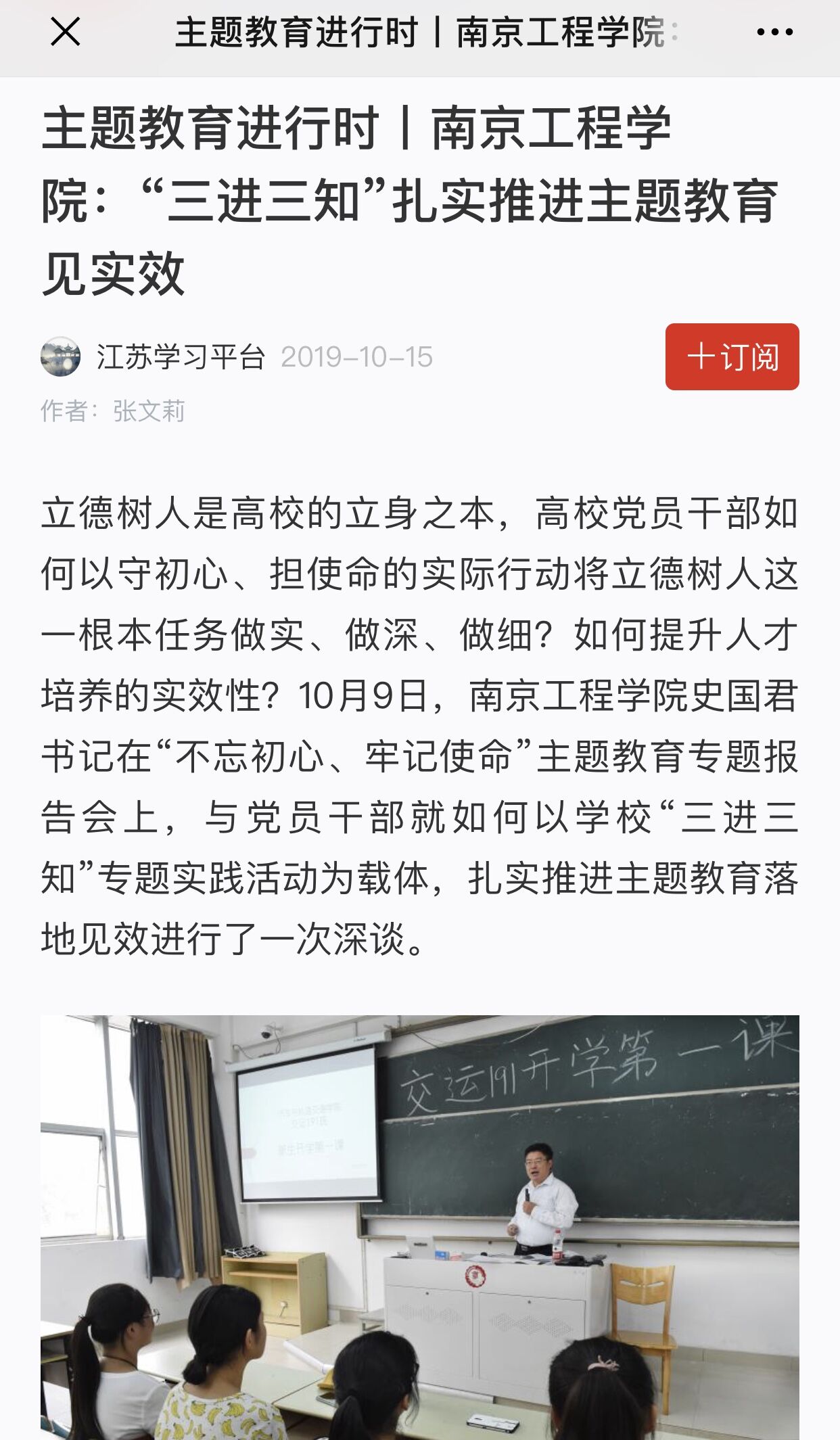 “互联网+三进三知工作法”是能源与动力工程学院“三进三知”实践活动的亮丽名片。在传统的QQ群、“能动青春荟”微信平台基础上,能源与动力工程学院“团支部电台”、“人人都是朗读者”线上朗读亭等自媒体平台不断更新,“第二班主任”积极参与其中,共同打造网络教育新阵地。自动化学院党委积极打造“学生成长沙龙”品牌活动,开展“自动化说”系列活动,根据学生能力发展需要建立涵盖人文阅读、科技创新、体育锻炼等类型的学生成长俱乐部。