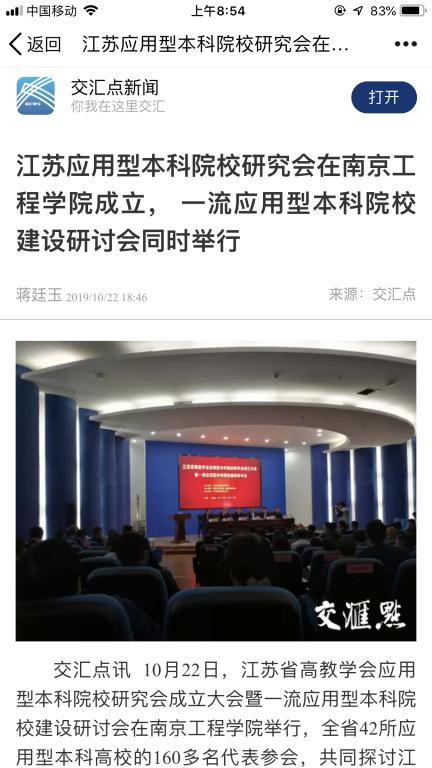 交汇点讯 10月22日,江苏省高教学会应用型本科院校研究会成立大会暨一流应用型本科院校建设研讨会在beat365官方网站举行,全省42所应用型本科高校的160多名代表参会,共同探讨江苏应用型本科院校发展之路。中国高等教育学会副会长张大良、江苏省高教学会会长丁晓昌出席研究会成立大会并讲话。研究会筹备期间形成的《一流应用型本科院校建设与发展“南京共识”》征求意见稿同日发布。