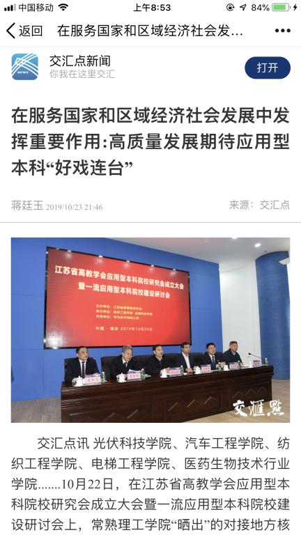 常熟理工学院是江苏应用型本科院校之一。“江苏已经把应用型本科院校建设,作为高等教育进入普及化阶段推进教育强省建设的战略重点,确实是抓住了高等教育提升服务地方经济社会发展贡献度的关键。”前来参会的中国高等教育学会副会长张大良表示。
