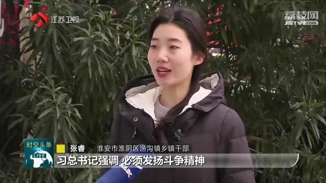淮安市淮阴区渔沟镇乡镇干部张睿说:“习总书记强调,必须发扬斗争精神。我们要将主题教育作为推动新思想融入灵魂、融入实践的‘深刻洗礼’,以只争朝夕,不负韶华的奋斗姿态,如期全面打赢脱贫攻坚战。”