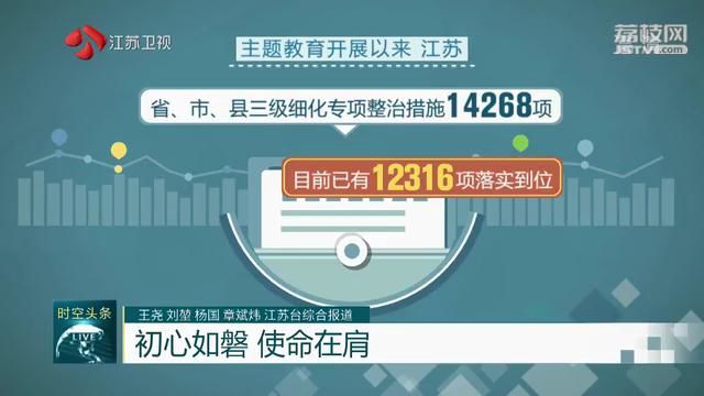 变化是最扎实的答卷,事实是最有力的证明。主题教育开展以来,江苏省、市、县三级细化专项整治措施14268项,目前已有12316项落实到位。