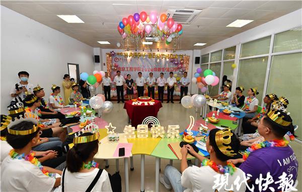 " 祝大家 18 岁生日快乐,开启全新的大学生活。" 开学报到日中午,大学生活动中心传来欢快的《生日歌》,18 名恰逢 9 月 12 日过生日的新生在此吹蜡烛、切蛋糕。这是南工程连续第五年在开学报到日,为新生过集体生日了。今年,全体校领导也都来到了生日会的现场,他们为过生日的新生,送礼物送祝福,亲笔书写贺卡,为他们佩戴校徽。现场,史国君书记、史金飞院长还通过直播镜头,向过生日新生的父母问好,表达了对孩子的祝福,对家长的祝贺。视频那头,来自南通的新生单仁杰的妈妈不停地说着谢谢," 学校比我们想得都周到,给孩子们这么多关爱,这样的 18 岁生日太有意义了,我们全家人都非常感谢,也放心了、安心了。"。