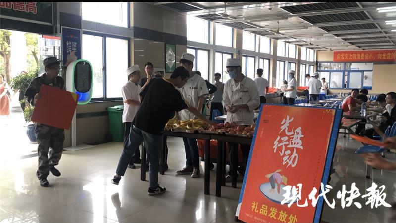 " 和同学一起在食堂吃饭,如果不光盘都不好意思,所以现在在打饭的时候,我都会适量少打一点。" 大一正在参加军训的一位 00 后女生说," 吃完光盘食堂有奖品,可以兑换一个水果或一杯酸奶,这样的形式特别好,如果没吃饱就可以继续吃,如果吃饱了,可以放在包里,下午再吃。"