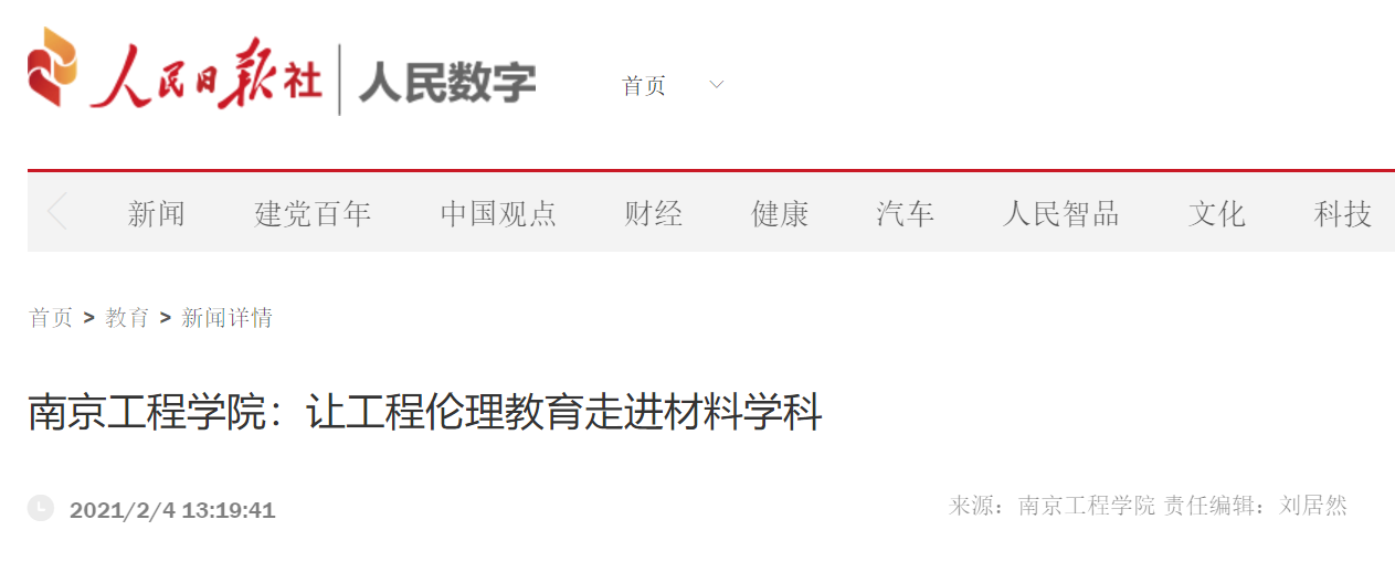 《新工科背景下材料类专业应用型人才培养工程伦理教育与模式创新研究》成功入选江苏省教育科学“十三五”规划课题;《新工科背景下材料类专业四维复合工程伦理教育模式的改革与实践》获得学校教学成果二等奖。