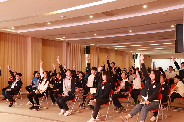 下午3点,悠谷学校的报告厅里座无虚席。“怕死?怕死就不当共产党员!”1947年1月,共产党员刘胡兰在国民党军队的铡刀下英勇就义。青年团员们以表演加讲述的形式,向“红领巾”们展现了刘胡兰“生的伟大,死的光荣”的动人故事,生动演绎再现了革命英烈慷慨就义的情景。随后,在“家乡故事汇”“红色故事竞答”等互动环节中,少先队员们纷纷分享家乡红色英雄人物的故事,积极参与红色知识竞答,与大哥哥大姐姐们一起回顾中国共产党百年来的光辉历程。