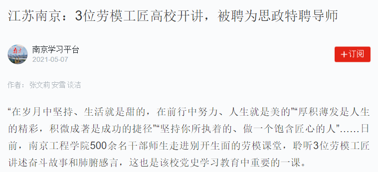 “3位大工匠给我们上了一堂特别而生动的专业课+人生课,他们才是我们青年学子应该追的‘星’!”即将走上工作岗位的大四学生陈宇皇表示,作为一名学生党员,今后要以他们为榜样,肩负起时代责任和历史使命。