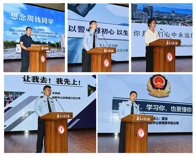 报告会上,周钱的大学同学袁安邦和成都市公安局温江区分局云溪派出所民警王文彬、原温江区永盛镇金鸡社区网格员杨怡、成都市公安局温江区分局禁毒大队副大队长李莽原、成都市公安局青羊区分局法制大队副大队长黄龙等报告团成员,用朴实无华却感人至深的语言,从不同角度、不同侧面深情讲述了周钱平凡而感人的点滴故事,描述了他牺牲前抓捕犯罪嫌疑人的场景,叙述着他生平的动人事迹。