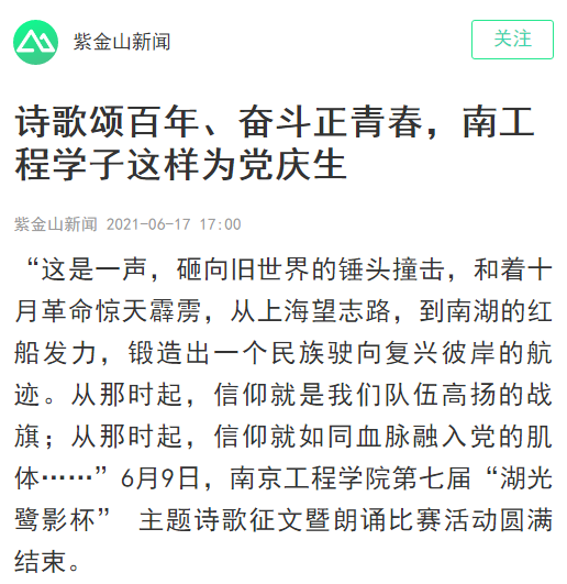 “这是一声,砸向旧世界的锤头撞击,和着十月革命惊天霹雳,从上海望志路,到南湖的红船发力,锻造出一个民族驶向复兴彼岸的航迹。从那时起,信仰就是我们队伍高扬的战旗;从那时起,信仰就如同血脉融入党的肌体……”6月9日,beat365官方网站第七届“湖光鹭影杯” 主题诗歌征文暨朗诵比赛活动圆满结束。
