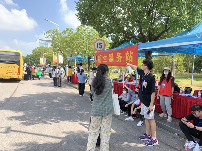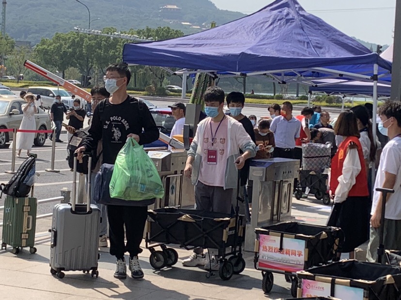 “志愿者帮助孩子把包裹送到宿舍,然后孩子拿着录取通知书等去学院报道,几分钟就搞定了全部流程。看到各个学校的迎新活动各具特色,真是欣慰。”来自徐州的家长吴海说,学校非常漂亮,等疫情以后,一定和女儿在天印湖畔拍张合影。