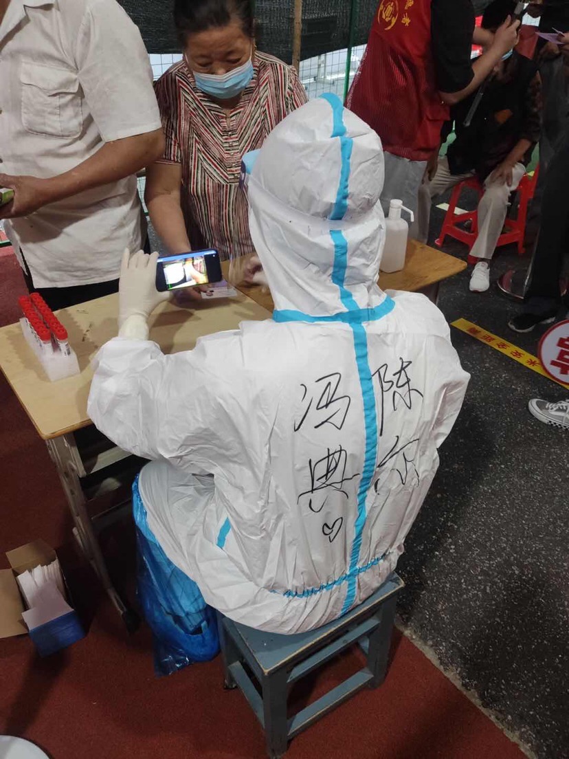 “我们社区负责的区域属于老城区,较为严重的老龄化给抗疫带来了不便,例如信息无法准确无误地传递给每户人家,为此我们社区必须保证上门一家一户地传递核酸检测日期地点等重要信息,我负责的区域大部分是自建房屋,没有规律可循,常常被弄得晕头转向。我和其他志愿者按照社区给的地址一户一户地敲门,老年人有些耳背,与他们交流需要大声的音量,嗓子都喊哑了。” 自动化学院机器人214冯陈典尔说。