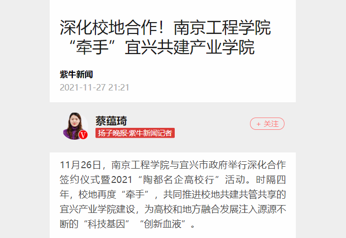 据了解,根据合作协议,“十四五”期间,校企双方计划投入4600万,大力实施“学科产业对接、校企协同育人、科创平台培育、高端人才汇聚、新型智库建设”五大工程,进一步推动校地融合、产教融合发展向更广领域、更多维度、更高层次迈进。宜兴市将无偿提供1000平方米以上的场地与配套费用,与学校协手将宜兴产业学院打造为高水平、示范性的“高水平应用型人才培养中心,学校学科专业建设智库、地方行业产业发展智库,校地融合发展基地、高水平产业技术研发基地、高价值技术成果转移转化基地,更好赋能校地高质量发展。