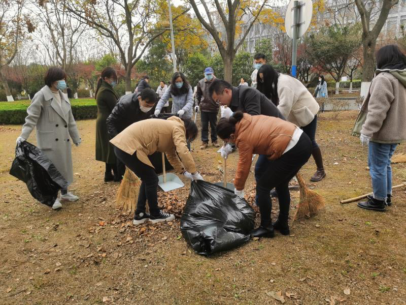 12月15日下午,小雨后的图书馆南门台阶下多了不少清扫环境的师生,这里正是直属单位党总支组织开展的“清洁环境倡导校园文明”活动现场。近50名党员和入党积极分子携带着筢子、大扫把、小扫帚、垃圾袋等工具,投入到了热火朝天的清扫工作中。他们用心清扫绿化带里的层层落叶、打包装车,他们认真捡起散落在步道角落、石阶缝隙、草丛深处的烟头、纸片、塑料袋等垃圾。很多隐蔽在草丛深处的易拉罐环、碎纸、螺丝钉等细小垃圾也被大家一一拾起。“清扫活动虽然比较辛苦,但是很有意义,在清扫过程中我也在反思自己有没有丢过垃圾,校园环境靠的不是别人,而是每一个南工程人的自觉。”总支第二党支部书记梅益春说。