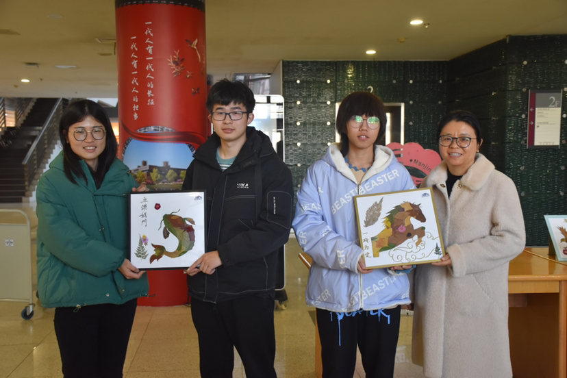 “自己平时也喜欢带着孩子做手工,但这次的意义不一般,画中的树叶来自学校,创意和制作来自老师和同窗,真心希望考研同学能在南工程、在大家的祝福中成功上岸!”送画现场,图书馆刘爱华老师表示。