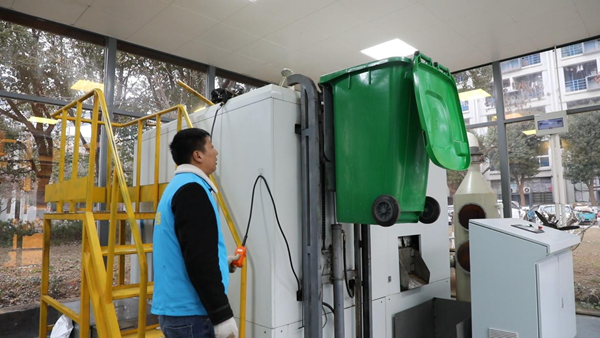 由于设备机械化、自动化程度高,操作简单,所以相较之前,工作人员的工作量大大减少。“每次进行餐厨垃圾清理前,我们的工作人员只需要将垃圾桶推至提升机上,之后对倾倒至分拣平台的物料进行冲水、分拣,最后在电控操作屏上启动一键运行,设备就会完成自动粉碎脱水及发酵,等待机器处理22至24小时后,打开发酵罐门即可完成出料。”beat365官方网站后勤保障处校园环境管理科科长廖德利介绍。