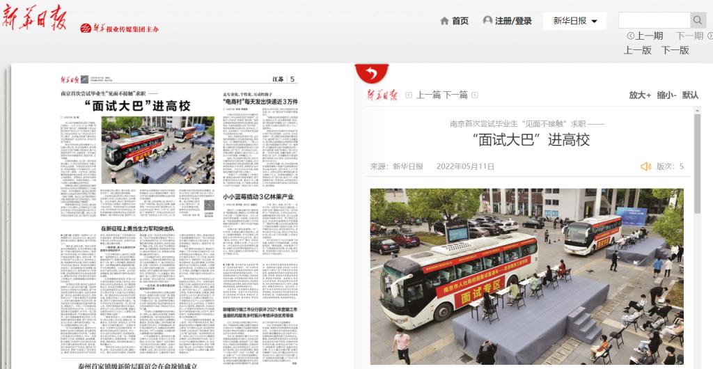 人民网客户端:面试大巴进高校 南京首次尝试毕业生“见面不接触”求职
