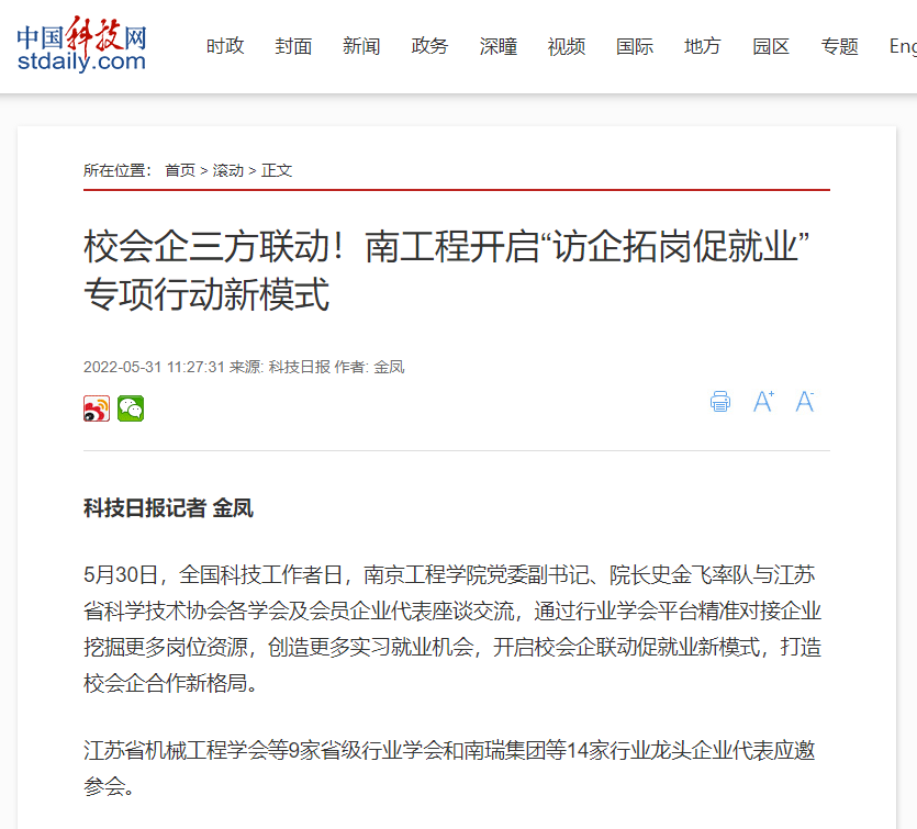 5月30日,全国科技工作者日,beat365官方网站党委副书记、院长史金飞率队与江苏省科学技术协会各学会及会员企业代表座谈交流,通过行业学会平台精准对接企业挖掘更多岗位资源,创造更多实习就业机会,开启校会企联动促就业新模式,打造校会企合作新格局。