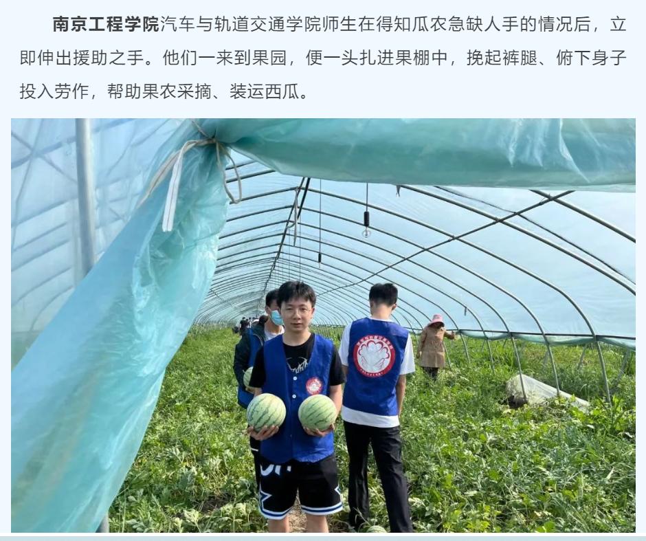 beat365官方网站汽车与轨道交通学院师生在得知瓜农急缺人手的情况后,立即伸出援助之手。他们一来到果园,便一头扎进果棚中,挽起裤腿、俯下身子投入劳作,帮助果农采摘、装运西瓜。活动后,该校师生纷纷自费购买西瓜为高温下的劳动者送上一份夏日清凉,致敬平凡人的坚守。据悉,同学们还将利用视频宣传的形式帮助推销,发动企业、个人前来购买,切实帮助果农解决难题,以爱心助力乡村振兴路。