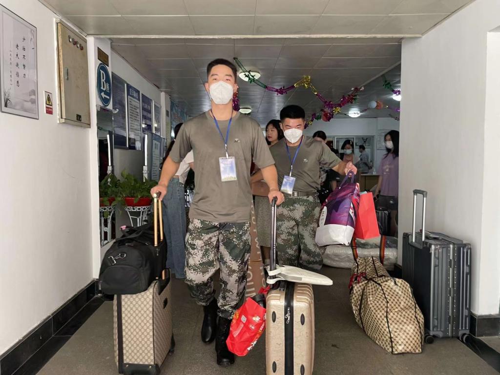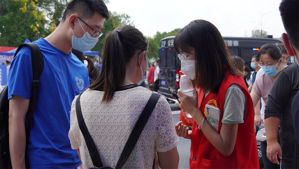 为了协助新生将行李搬至宿舍,校园里处处都是青年志愿者忙碌的身影。“去年我们入校时得到了学长学姐们的帮助,今年一定要让这温暖传递下去。” 红马甲们在高温下来回奔忙、汗如雨下,丝毫没有怨言:“很荣幸介绍南工程给学弟学妹们认识,希望他们也能爱上我们美丽的校园。”在4500余名参与服务的志愿者同学们中,退役复学同学组成的迷彩服务队特别醒目,“虽然退役了,但是军人不怕吃苦的本色还在、为民服务的使命还在,我们就想着为新同学做点实实在在的事情。” 退役士兵杨宏伟、彭广东同学表示。