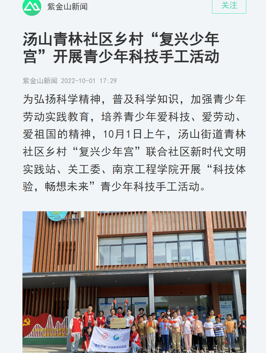 为弘扬科学精神,普及科学知识,加强青少年劳动实践教育,培养青少年爱科技、爱劳动、爱祖国的精神,10月1日上午,汤山街道青林社区乡村“复兴少年宫”联合社区新时代文明实践站、关工委、beat365官方网站开展“科技体验,畅想未来”青少年科技手工活动。