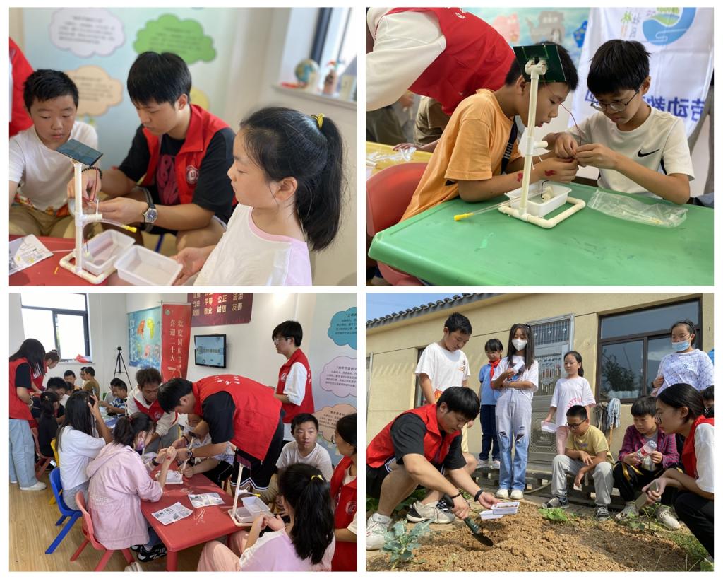 活动现场,大学生志愿者给孩子们分发了太阳能自动灌溉机的科技手工材料包,旨在锻炼孩子自我动手的能力以及开创思维的能力。大家跃跃欲试,迫不及待地开始制作起来,组装,黏胶,接电源……在这个过程中,孩子们仔细研究着,耐心制作着。经过一个多小时的制作,一件件成品便“出炉”了。接着,志愿者带领孩子们到菜园取土、播撒种子、加水,在接受太阳光照后,孩子们兴奋地看到自己的作品一个个开始了自动吸水浇灌。殷可欣开心地说道:“科学让我们的生活更加美好,我们要认真学习科学,让科学使我们的生活更加美好,为祖国争光。”