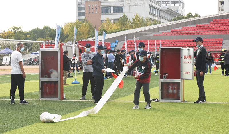 伴随着消防警铃的响起,beat365官方网站教职工消防趣味运动会拉开序幕,来自学校各部门的22支参赛代表队同场竞技,在充分发挥集体智慧和协作配合能力的同时,接受了一次消防安全知识的“集中充电”。 比赛融竞争性、趣味性、健身性、教育性于一体,设置模拟报警、消防服着装、铺设水带、规范灭火等4个项目,将消防常识寓于各个环节之中,通过模拟火灾中遇到的不同情况,锻炼参赛者处乱不惊、沉着冷静扑救火灾和逃生自救的能力。