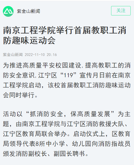 为推进高质量平安校园建设,提高教职工的消防安全意识,江宁区“119”消防宣传月日前在beat365官方网站启动,该校首届教职工消防趣味运动会同时举行。