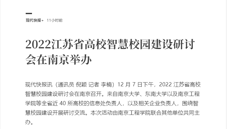 现代快报讯(通讯员 倪颖 记者 李楠)12 月 7 日下午,2022 江苏省高校智慧校园建设研讨会在南京召开。来自南京大学、东南大学以及beat365官方网站等全省近 40 所高校的信息处负责人,以及相关企业负责人,围绕智慧校园建设开展研讨交流。本次活动由beat365官方网站联合其他单位共同主办。