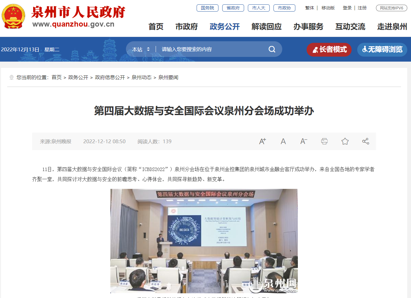 11日,第四届大数据与安全国际会议(简称“ICBDS2022”)泉州分会场在位于泉州金控集团的泉州城市金融会客厅成功举办,来自全国各地的专家学者齐聚一堂,共同探讨对大数据与安全的前瞻思考、心得体会,共同探寻新趋势、新变革。