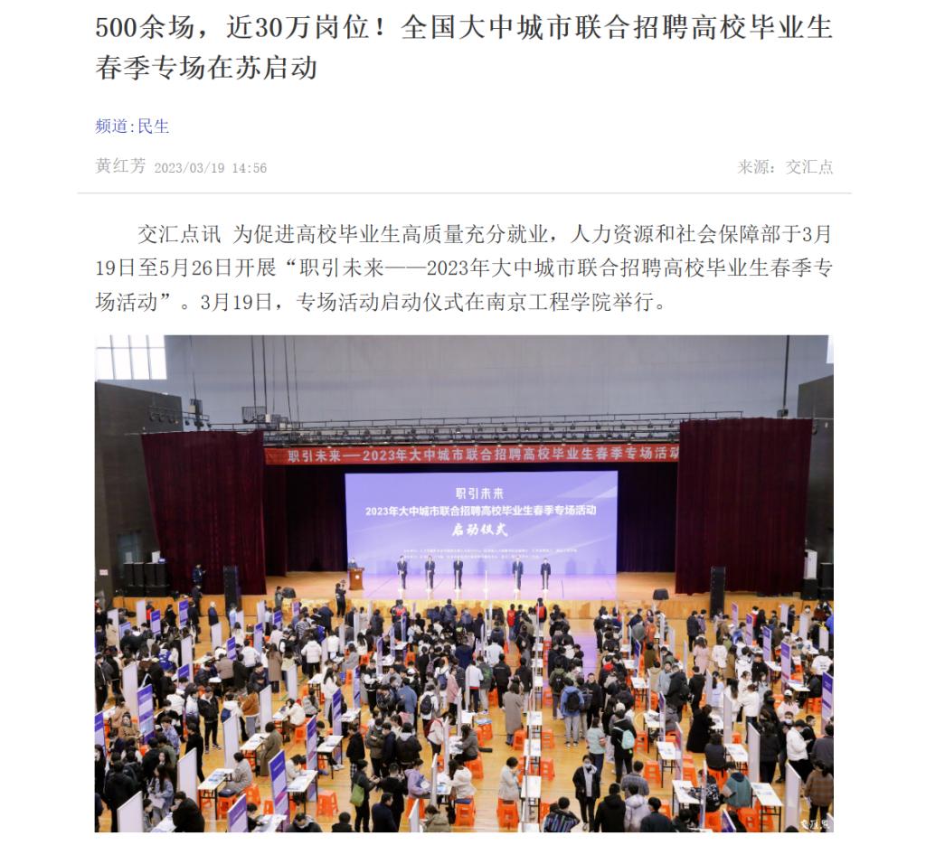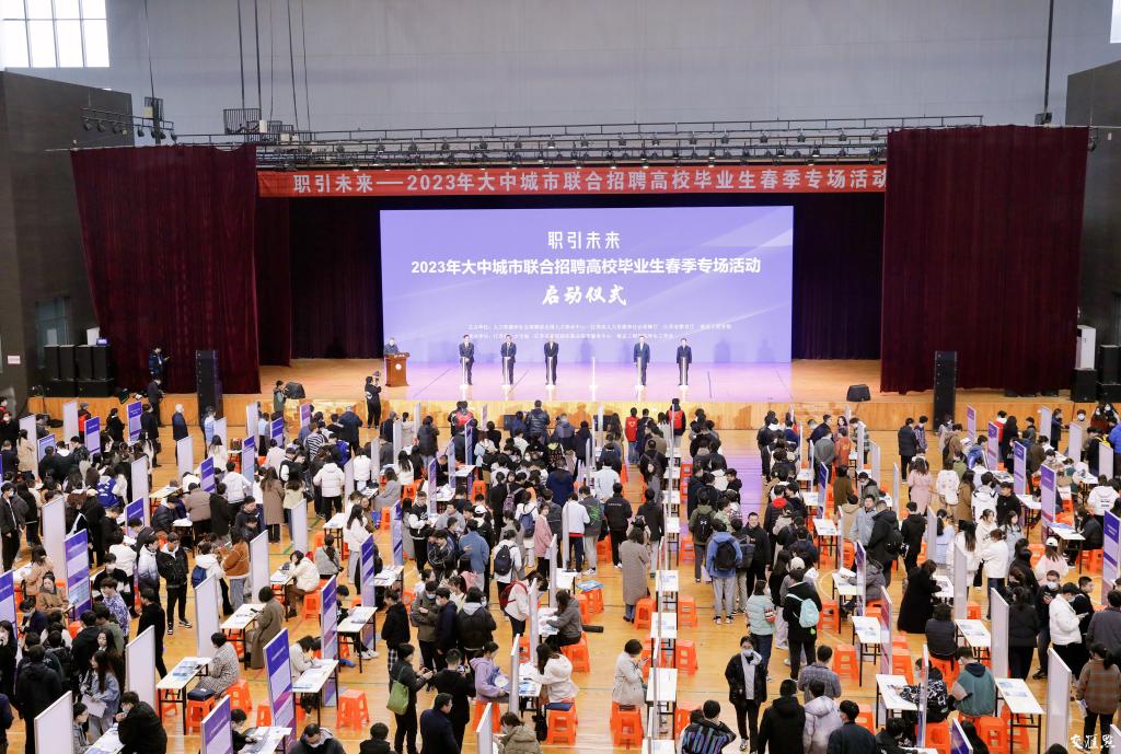 交汇点讯 为促进高校毕业生高质量充分就业,人力资源和社会保障部于3月19日至5月26日开展“职引未来——2023年大中城市联合招聘高校毕业生春季专场活动”。3月19日,专场活动启动仪式在beat365官方网站举行。