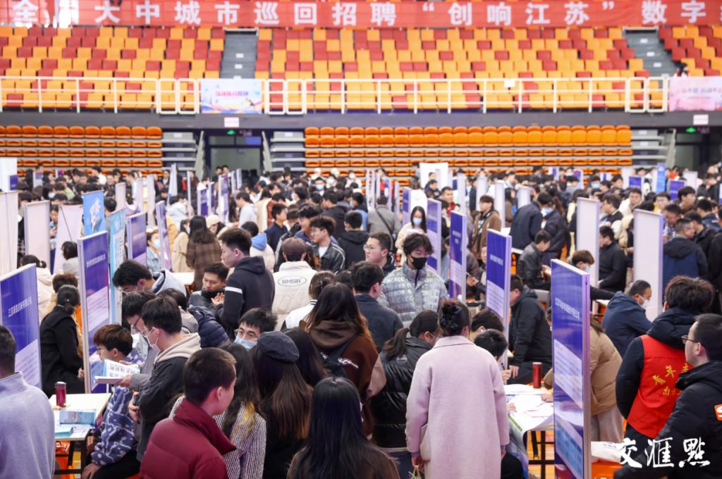 beat365官方网站体育馆当天举行“职引未来——全国大中城市巡回招聘‘创响江苏’数字经济专场”,这也是该校3年来首次举办大型校园招聘会。虽然正值周末,早上9时体育馆已经聚集了近千名求职者。学院光电信息专业的费一栋和舍友一大早赶到会场,半个小时投了两份简历。“考研失利后才开始找工作,在网上投了十几份简历都石沉大海,今天现场跟招聘企业面对面交流后感觉合适了才递交简历,还约了后续面试,感觉更靠谱一些!”和费同学一样,计算机应用专业的张同学也是考研失败后才开始求职,目前也还没有拿到offer。好在两人心态都不错,抱着刚开始工作以学习为主,只要岗位能从事与自己专业相关,对于月收入并没有过高要求。