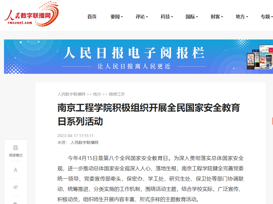 校内对接校外,加强新时代全民国防教育。学校积极采取“请进来”与“走出去”相结合的方式,邀请南京市国家安全局专家来学校为师生作国家安全专题讲座,邀请中国人民解放军陆军工程大学学员来校开展“军地学子心向党,共学党的二十大”共建交流活动,学校还组织专武干事、有意愿应征入伍的毕业生、学生军事爱好者走进空军某大队,零距离接受国防教育,感受军人风采。
