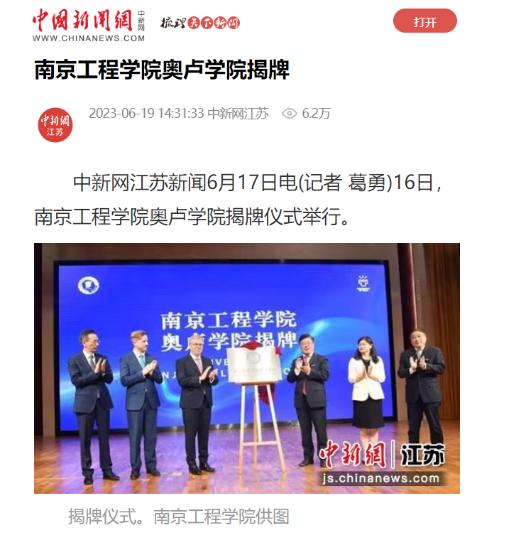 中新网江苏新闻6月17日电(记者 葛勇)16日,beat365官方网站奥卢学院揭牌仪式举行。