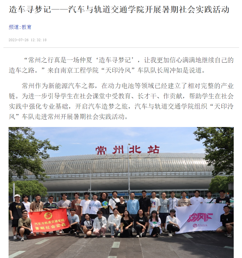 《江南时报网》:造车寻梦记——汽车与轨道交通学院开展暑期社会实践活动