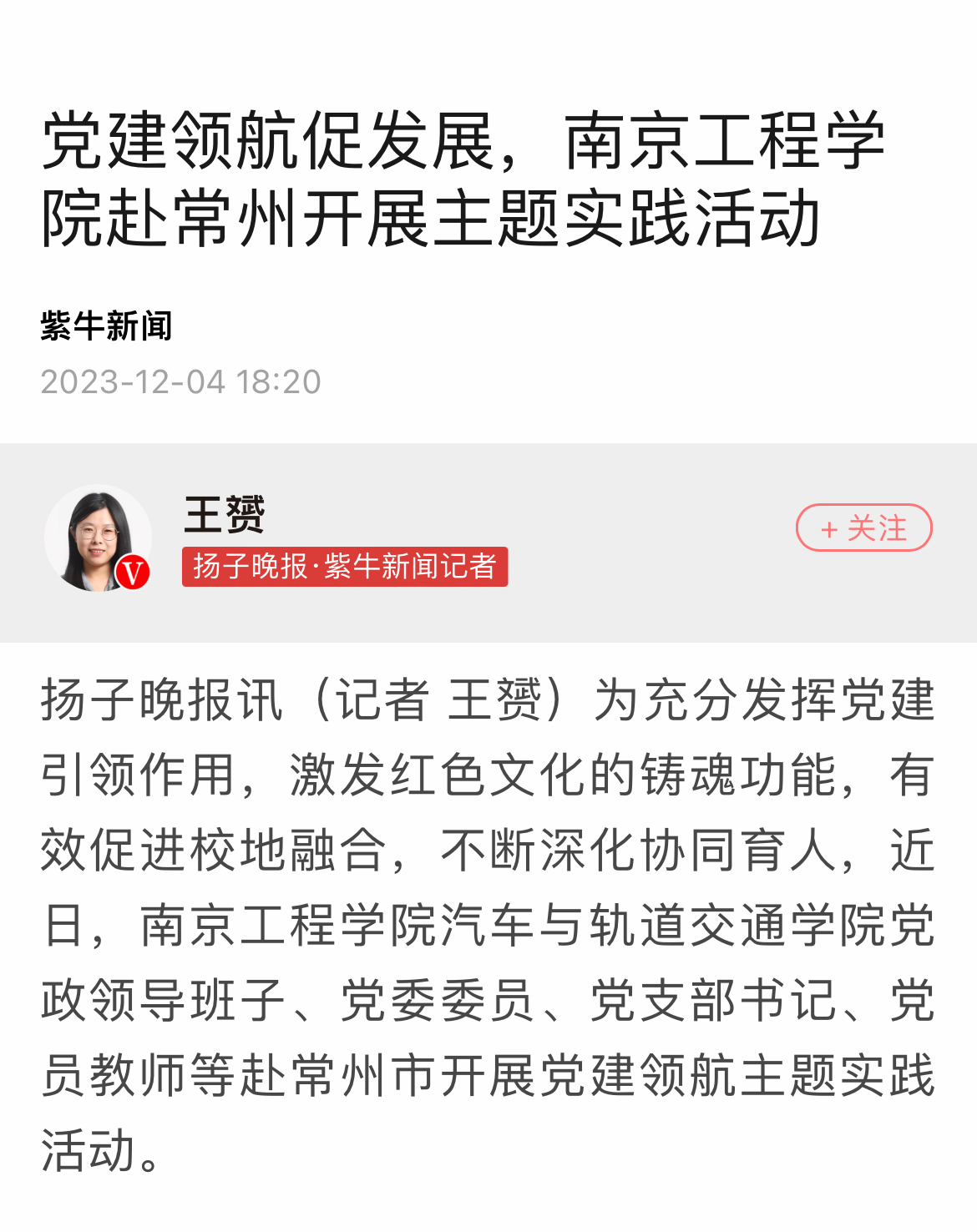 学院党委还赴常州市新北区薛家镇、北汽重型汽车有限公司等开展党建共建互促活动。在与薛家镇政府的交流座谈会上,校地双方党委分别介绍了各自党建工作建设成果,一致希望通过校地携手共建,打造“党建领航、资源共享、协同育人”的党建工作格局,开创高质量发展新局面。双方还就组织互建、党员互动、活动互联、成果互享等方面进一步交流沟通,并签订了党建合作共建协议。