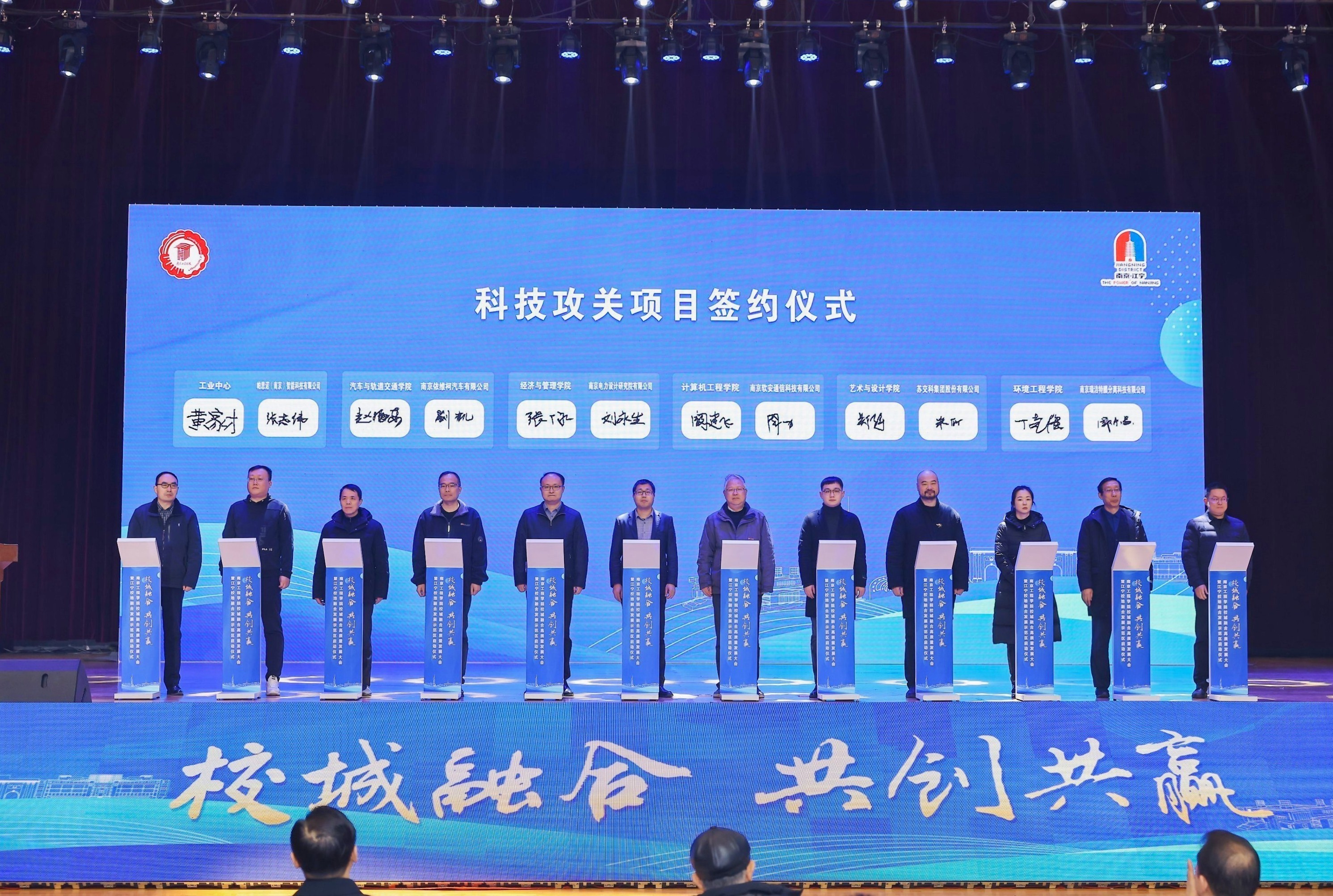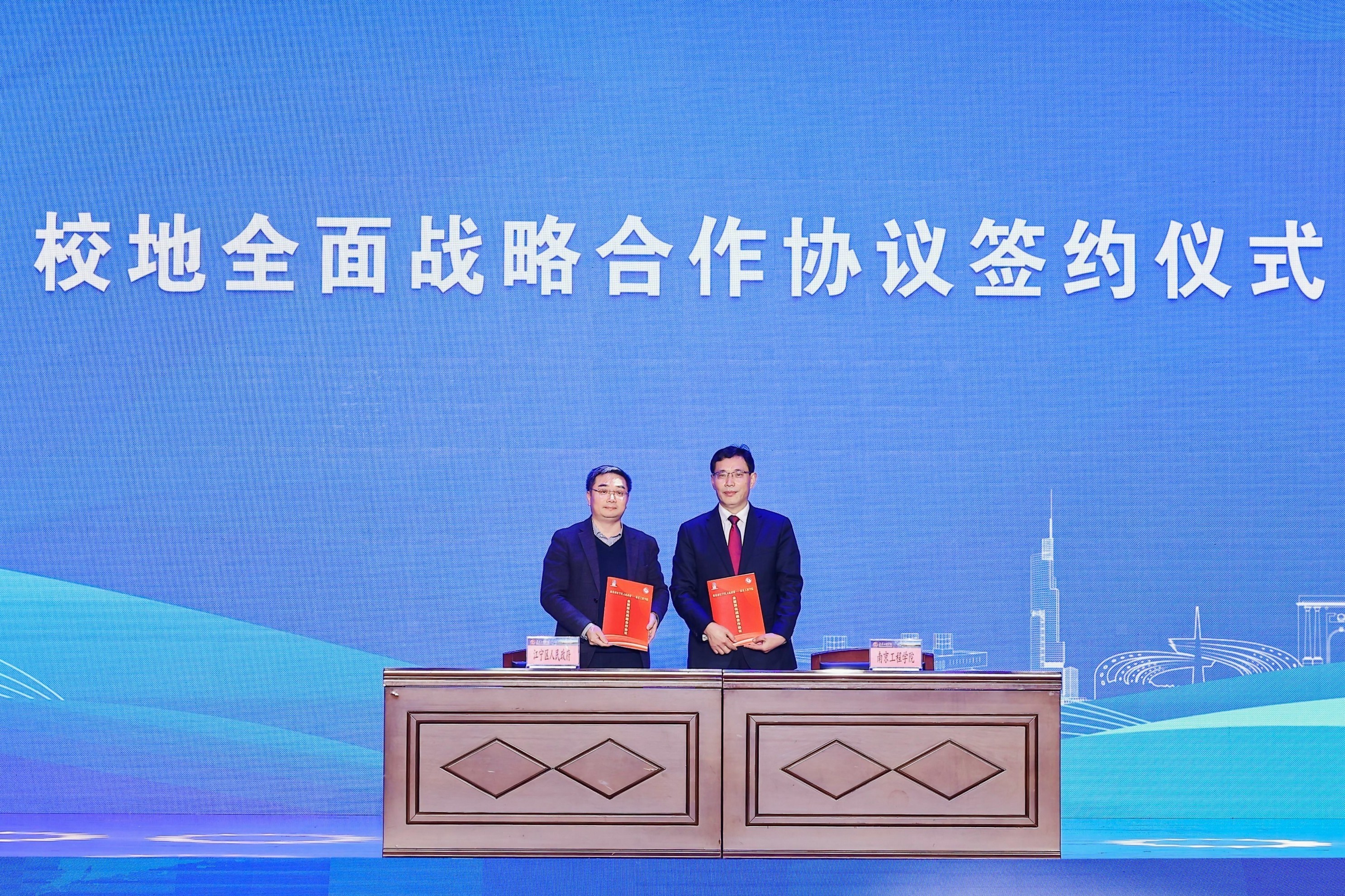 交汇点讯 1月28日,在beat365官方网站校城融合高质量发展大会暨江宁校地融合发展示范区启动仪式上,beat365官方网站与南京市江宁区签订全面深化战略合作协议,校地共建“世界电谷”;现场,省内外60多家企业与南工程签约。