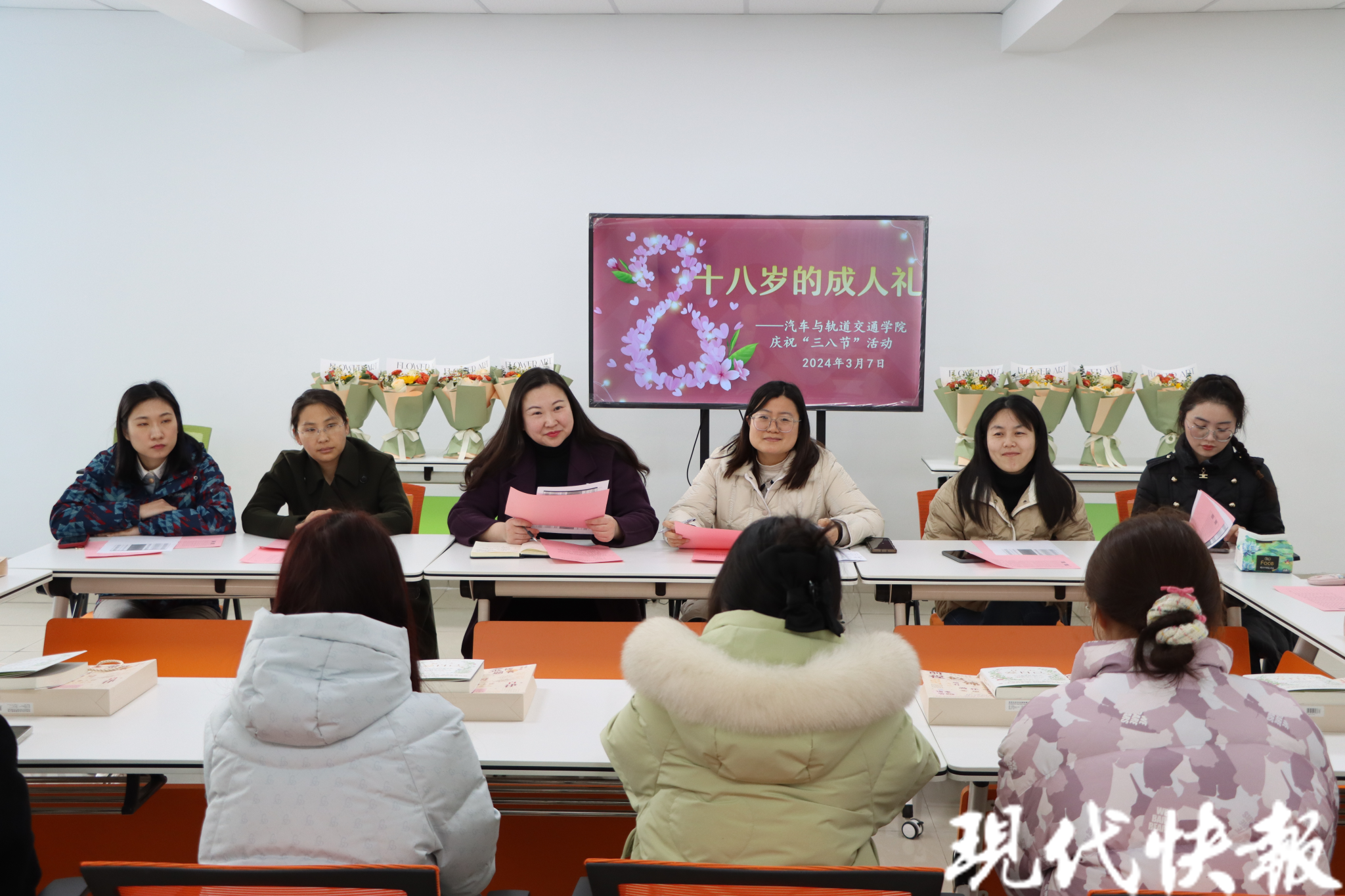 据悉,为充分凝聚学校和学院事业高质量发展中的“她”力量,更好贡献巾帼智慧,在“三八”国际劳动妇女节到来之际,该校汽车与轨道交通学院党委在“一站式”学生社区开展了一场别开生面的“十八岁的成人礼”主题活动。该学院党委书记王薇薇、党委副书记王潘潘、女教工党员们以及刚满18岁的学院大一年级女生代表们参加了本次活动。
